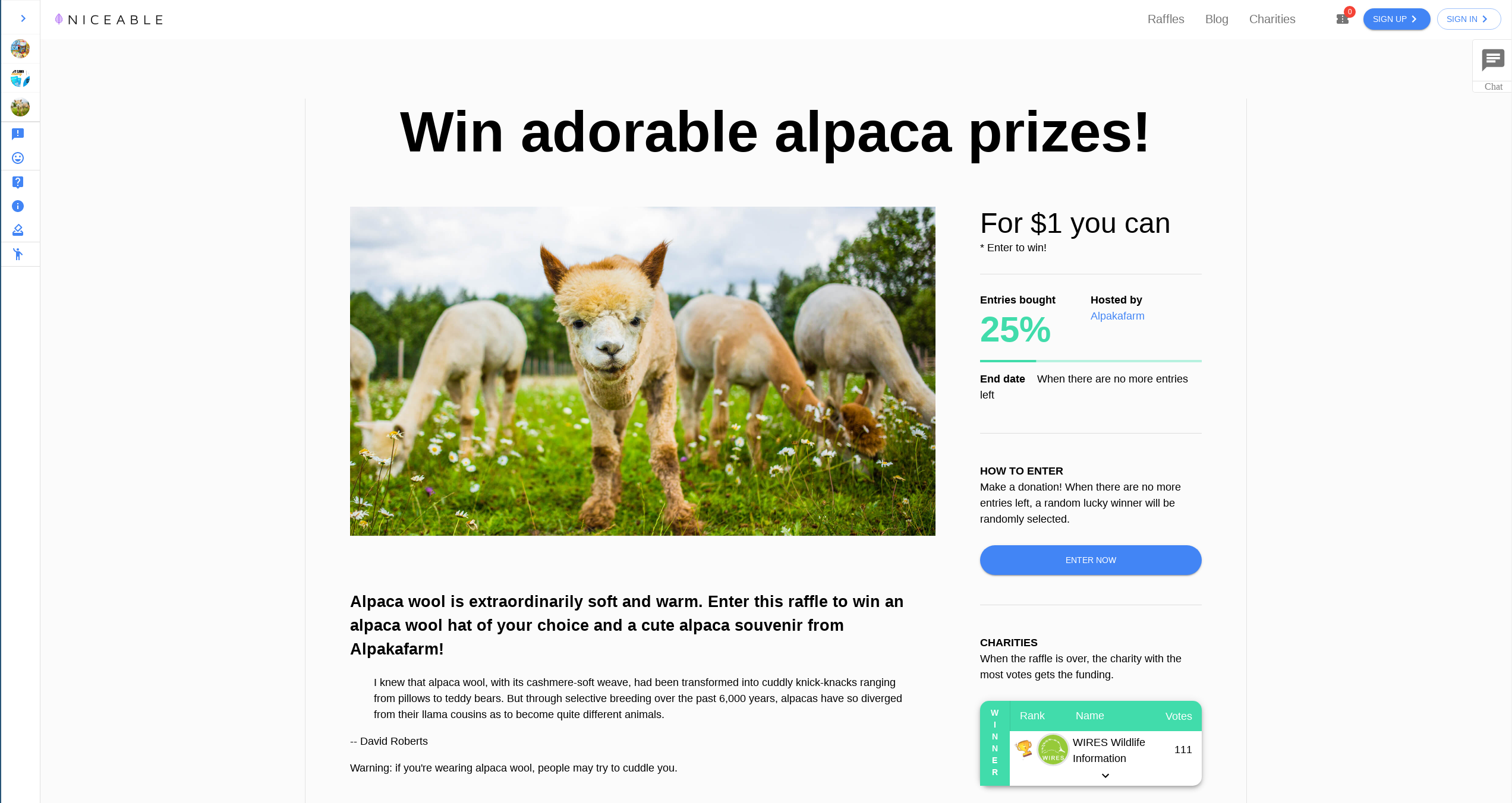 Niceable is a fundraising platform for non-profits. We use Raffles to make charitable giving accessible and fun with a minimum entry amount of only $1.